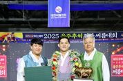 [ 중앙뉴스미디어 ] 울주군청 해뜨미씨름단 소속 노범수 선수가 5일 울산 울주군 울주종합체육센터에서 열린 ‘위더스제약 2025 울주추석장사씨름대회’에서 태백장사에 등극했다. 노범수는 이날 5판 3선승제로 펼쳐진 태백장사(80㎏ 이하) 결정전에서 허선행(수원특례시청)을 꺾고 우승을 차지하며 개인 통산 24번째(태백장사 20회, 금강장사 4회) 황소트로피를 들어올렸다. 시드 배정으로 8강에 오른 노범수는 이은수(영암군민속씨름단)를 만나 들배지기되치기와 왼배지기로 이겼다. 이어 4강에서 만난 문준석(수원특례시청)을 잡채기와 들배지기로 제압하며 무패로 결승에 진출했다. 결승 상대는 개인통산 7번째 태백장사에 도전하는 강력한 우승후보인 허선행(수원특례시청)으로 두 선수의 팽팽한 접전이 예상됐다. 첫 번째 판 허선행이 잡채기를 시도해 노범수가 이를 뒤집기로 반격했으나 그 과정에서 허선행의 목이 꺾이는 부상으로 기권하며, 경기는 노범수의 승리로 마무리됐다. 이로써 노범수는 홈그라운드에서 열린 대회에서 우승을 차지하며, 올 시즌 2번째 장사(25 유성대회, 25 추석대회)에 올랐다. 한편 울산 울주군