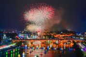 [ 중앙뉴스미디어 ] 진주시는 4일 저녁 진주성 및 남강 일원에서 대한민국 명예 문화관광축제인 ‘2025 진주남강유등축제’의 화려한 막을 올리고, 오는 19일까지 남강의 가을 밤하늘을 수놓는다. 이날 개막식에는 남강과 진주성을 밝힌 7만여 유등과 함께 ‘3D 홀로그램 유등’, ‘수상 불꽃놀이’, ‘드론 라이트쇼’가 어우러지며 환상적인 가을밤을 연출했다. 개막식은 남강 일대의 불빛을 점등하는 ‘초혼점등식’으로 시작됐다. 진주성 촉석루를 배경으로 한 서사적 내레이션과 함께 수상에 띄워진 유등이 순차 점등됐다. 이어 올해 새롭게 도입된 수상드론과 불꽃드론이 결합된 ‘드론·불꽃 라이트쇼’가 펼쳐져 관람객들의 탄성을 자아냈다. 이날 행사에는 조규일 진주시장과 구자천 제전위원장 등 주최 측을 비롯해 박대출, 강민국 국회의원과 박명균 경상남도 행정부지사, 백승흥 진주시의회 의장, 도·시의원, 각급 단체장, 문화예술계 인사 등 많은 내빈이 참석한 가운데 유등축제를 1년 동안 기다려온 많은 시민과 관광객들이 운집해 인산인해를 이뤘다. 올해 축제는 전통 유등의 아름다움과 첨단기술의 결합이 강화됐다. 진주의 관광캐릭터