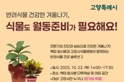 [ 중앙뉴스미디어 ] 고양특례시는 반려식물의 건강한 겨울나기를 위한 맞춤 해법을 제공하는 ‘그린케어, 겨울 대비 반려식물 돌보기 행사’를 오는 10월 23일 오후 2시부터 5시 30분까지 백마 화사랑에서 개최한다고 밝혔다. 먼저 백마 화사랑 야외 공간에서는 고양시식물병원 전문가가 상주해 시민이 직접 가져온 반려식물에 대해 1:1 현장 진단을 제공하고, 병해충, 과습 등 식물의 상태에 따라 분갈이, 영양제 처방 및 맞춤형 월동 관리법을 안내한다. 별도 신청 없이 당일 현장 접수로 참여 가능하다. 실내에서는 ‘반려식물 동절기 핵심 관리법’을 주제로 체험형 특강이 진행된다. 겨울철 생육 관리 요령, 휴면기 대비 가지치기 및 분갈이 실습 등 내년 봄의 성장을 위한 전문적인 지식을 습득할 수 있다. 특강은 백마 화사랑 누리집에서 선착순 12명까지 신청할 수 있다. 시 관계자는 "겨울은 식물이 가장 취약해지는 시기인 만큼, 이번 행사를 통해 전문가의 과학적인 진단과 맞춤형 솔루션으로 반려식물과 더욱 건강하고 풍요롭게 겨울을 나시길 바란다”고 전했다. 행사에 대한 자세한 내용과 특강 신청은 백마 화사랑 누리집을