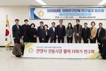 [ 중앙뉴스미디어 ] 안양시의회 의원연구단체 ‘안양시 전통시장 활력 더하기 연구회(대표의원 강익수)’는 11일 시의회 소회의실에서 최종보고회를 열고, 지난 8개월간의 연구활동을 마무리했다. 이번 연구회에는 강익수 대표의원을 비롯해 김보영, 음경택, 김정중, 채진기, 이동훈, 곽동윤 의원이 참여했으며, 세대공감소통연구소(책임연구원 송은옥)와 함께 안양시 내 전통시장의 경쟁력 강화를 위한 다양한 활성화 방안을 연구했다. 연구회는 지난 4월 착수보고회를 시작으로, 관내 5개 전통시장 상인회의 의견을 수렴하고 세 차례의 현장 벤치마킹을 실시했다. 이를 통해 각 시장의 특화 전략과 타 지역의 성공 사례를 조사·분석하고, 시장별 여건과 입지 환경을 고려한 실질적인 활성화 전략을 마련했다. 강익수 대표의원은 “짧지 않은 기간 동안 현장을 직접 발로 뛰며 얻은 결과를 토대로, 안양시 전통시장이 시민과 관광객이 다시 찾는 매력적인 공간으로 거듭나길 기대한다”고 밝혔다. 안양시의회는 앞으로도 지역경제의 근간인 전통시장의 활성화와 상인들의 실질적 지원을 위해 다양한 정책 연구와 의정 활동을 이어갈 계획이다.