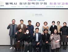 [ 중앙뉴스미디어 ] 평택시의회 의원 연구단체인 ‘평택시 청년정책연구회’는 17일 시의회 간담회장에서 최종보고회를 개최했다. 보고회에는 김산수 대표의원을 비롯해 김혜영·이기형·유승영 의원과 외부 전문가 회원, 청년정책과장 등 약 15명의 관계자가 참석했으며 연구용역을 맡은 더가능연구소 정현미 수석연구원으로부터 연구용역 최종보고를 청취하고 질의응답 시간을 가졌다. 주요 내용으로 △중앙정부 및 경기도 청년정책 주요 방향 △청년친화도시 지자체 정책의 시사점 △청년친화도시 조성을 위한 정책 제안 △평택시 청년친화도시 추진 방향 등에 대해 청취 후, 참석자들 간 여러 의견을 교환했다. 김산수 대표의원은 “올해 연구회 활동은 오늘로 마무리 되지만 많은 청년들이 평택시에서 일하고·놀고·살고 싶게 만드는 청년정책의 근본적인 시스템 구축의 시작점이기도 하다”며 “향후 청년친화도시 지정을 위하여 청년의 목소리를 중심에 두고 부족한 부분을 보완하며, 청년이 머물고 성장할 수 있는 정책 기반을 마련하기 위해 계속 관심을 가지고 지원하겠다”고 말했다. 한편, 해당 연구회는 ‘평택시 청년친화도시 조성을 위한 정책 연구’를