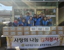 [ 중앙뉴스미디어 ] 평택시 통복동 바르게살기위원회는 지난 20일과 21일 이틀간 ‘사랑의 김장 나눔’ 행사를 개최하고 관내 취약계층에 김장 김치 150㎏을 전달했다. 이번 나눔 행사는 바르게살기위원회가 재료를 직접 준비하고, 평안밀알복지재단과 함께 김장을 담그는 방식으로 진행됐다. 위원회 회원들과 평안복지재단 관계자들이 정성껏 담근 김치는 당일 통복동으로 운반되어 취약계층 가구에 전달됐다. 홀몸 어르신, 장애인 가구, 저소득 가정 등 15세대를 직접 방문해 김장 김치를 전달하고 안부를 확인했다. 또한 생활상 어려움을 듣는 등 따뜻한 교류의 시간을 가졌다. 이석주 위원장은 “위원들이 준비한 재료로 복지재단과 함께 김장을 담그며 나눔의 의미를 더욱 깊이 느낄 수 있었다”며 “앞으로도 지역사회와 함께하는 실질적인 봉사활동을 지속해 나가겠다”고 밝혔다. 이의재 통복동장은 “지역의 이웃사랑을 실천하는 바르게살기위원회와 협력해주신 복지재단에 깊이 감사드린다”며 “행정복지센터도 취약계층 복지 향상을 위해 최선을 다하겠다”고 말했다.