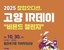 [ 중앙뉴스미디어 ] 고양특례시는 오는 30일 일산서구청 가와지 대강당에서 창업오디션‘2025년 하반기 고양 아이알(IR)데이’를 개최한다고 밝혔다. 이번 행사는 성장 가능성 있는 창업기업과 투자자, 창업지원기관 간의 만남의 장으로, 창업기업에 투자 유치 연계, 사업 파트너십 구축, 네트워킹 확대 등 다양한 기회를 제공하기 위해 마련됐다. 시는 지난 8월 25일부터 고양 아이알(IR)데이 창업기업을 모집했다. 총 47개사가 신청해 1차 서류평가와 2차 발표 평가 절차를 거쳐 최종 10개사가 선정됐다. 선정된 창업기업은 투자유치를 위한 전문가 멘토링을 받았으며, 아이알(IR)데이에서 혁신적인 창업 제품과 서비스에 대해 열띤 피칭을 선보일 예정이다. 이날 발표 심사와 투자는 고양청년창업펀드 및 고양벤처펀드 운용사 등 10명의 벤처투자자와 창업기획자들이 참여해 진행한다. 시 관계자는 "상반기 대회에서 성장상을 수상한 ㈜빌드코퍼레이션(대표 이준호)이 투자유치에 성공하는 성과를 이룩했다”며 "이번 대회에서도 우수 창업기업과 투자자 간의 소중한 소통을 통해 투자 성과가 이루어지기를 기대한다” 라고