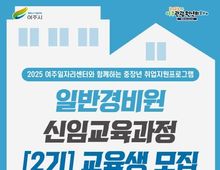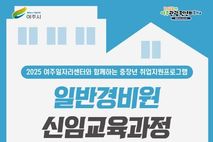 [ 중앙뉴스미디어 ] 여주시는 10월 13일부터 10월 27일까지 베이비부머(중장년) 취업지원을 위한 ‘2025년 일반경비원 신임교육과정 2기 교육생’을 모집한다. 이번 교육은 경비 분야로의 재취업을 희망하는 중장년층에게 필요한 법적 지식과 실무 역량을 제공하기 위해 마련됐다. 교육과정은 보안법과 범죄 예방 이론을 비롯해 순찰 요령과 관찰 훈련 등 현장에서 바로 활용할 수 있는 실무 중심 과정으로 교육시간은 24시간이며, 교육비는 전액 지원된다. 단, 교통비와 중식비는 개인이 부담해야 한다. 시 관계자는 “지난 상반기에 진행된 1기 교육에서는 15명의 수료자 중 9명이 취업에 성공하며 높은 성과를 거뒀다”라며, “이번 2기 역시 중장년층에게 새로운 일자리 기회를 제공하는 의미 있는 교육이 될 것으로 기대된다”라고 밝혔다.