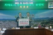 [ 중앙뉴스미디어 ] 14일, 조용익 부천시장을 비롯한 부천시 충청권 정책현장 벤치마킹 방문단 24명이 ‘향수의 고장’ 옥천군을 방문했다. 이번 만남은 2002년 자매결연을 체결한 두 지역 간의 우호 증진과 교류 확대를 위한 자리로 마련됐다. 이날 옥천군과 부천시는 각 200만 원의 고향사랑기부금을 상호 기탁하며 두 지역의 발전을 함께 응원했다. 황규철 옥천군수는 옥천군청에 마련된 기탁식에서 “공직자들의 고향사랑 상호 기부가 지역 간 상생 협력의 통로가 되고 있다”며 “부천시와 따뜻한 연대를 이어가게 되어 기쁘다”고 말했다. 조용익 시장 역시 “기부를 통해 두 지역이 더욱 돈독해지고, 함께 성장할 수 있기를 기대한다”고 전했다. 특히, 얼마 전 모금을 시작한 ▲옥천군 첫 지정기부사업 '예체능 꿈나무 지원(양궁·관악부)'과 ▲부천시 지정기부사업 '소외계층 스케이트 무료교실 운영'을 각각 홍보하여 두 자매도시의 협력 관계를 바탕으로 기부제 확산에 긍정적 영향을 미칠 것으로 기대된다. 옥천군에 따르면, 두 도시의 인연은 1940년대 부천시에 거주하며 소사성당 건립에 기여한 정지용 시인의 공덕을 기리며 시작됐고 202
