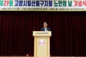 [ 중앙뉴스미디어 ] 지난 17일 (사)대한노인회고양시일산동구지회에서 주최한 제29회 노인의 날 기념행사가 성대하게 개최됐다. 이날 기념식에는 관내 경로당 회원과 내빈 300여명이 참석했으며, 난타, 합창 등 식전공연을 시작으로 유공자 표창, 기념사·축사가 진행됐다. 특히 모범노인과 노인복지기여자 등 그동안 노인복지증진을 위해 노력한 공로로 17명의 회원에게는 고양시장상, 시의회의장상, 국회의원상, 지회장상 등의 표창이 수여됐다. 정영주 지회장은 “사회의 어른으로서 항상 솔선수범하는 자세를 보여주신 어르신들의 노고를 잊지 않고 대한노인회가 더욱 발전할 수 있도록 역할을 다하겠다”고 전했다. 기념식에 참석한 이동환 고양시장은 “평생을 헌신하시며 사회의 근간이 되신 어르신들께 감사와 존경의 말씀을 드린다”며, “어르신들의 귀한 목소리에 귀를 기울여 어르신이 존중받고 행복한 도시가 될 수 있도록 최선을 다하겠다”라고 전했다.