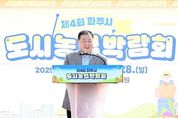 [ 중앙뉴스미디어 ] 파주시는 운정건강공원에서 지난 26일부터 3일간 ‘젊은 농부와 도시가 만나다’를 주제로 열린 ‘제4회 파주시도시농업박람회’를 성황리에 마치고, 도시민과 농촌이 하나 되는 자리를 통해 파주시 도시농업의 미래 가능성을 제시했다고 밝혔다. 전시공간과 체험공간을 운영, 도심에서는 보기 어려운 목화, 대추나무, 레몬, 까치콩, 달가지 등 여러 가지 농작물 전시와 도시농업 작품 전시를 통해 도시민이 농업에 쉽게 접근하고 이해할 수 있도록 꾸몄다. 삼색경단꼬치·바람떡 만들기, 다육정원·관엽정원 만들기, 전통 다식 등 다양한 체험 프로그램과 거리공연(버스킹), 동극, 비눗방울 공연 등의 가족단위 공연 프로그램은 방문객들의 뜨거운 반응을 이끌어 냈다. 또한 시에서 배출한 도시농업관리사들의 숨은 기량을 뽐내는 ‘제2회 도시농업관리사 작품 전시전’과 관내 4개 중고등학교 학생들이 직접 참여한 ‘청소년 도시농업 경연대회’, 파주시 어린이집에서 직접 재배한 ‘벼 화분 전시’는 관람객들의 눈을 즐겁게 했다. 박람회는 잔디광장 텃밭 정원에 심었던 여러 가지 쌈 채소와 도시농업관리사 전시 작품들을 나누고 기부하는 행사