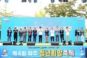 [ 중앙뉴스미디어 ] 파주시는 지난 27일 금릉역 앞 중앙광장에서 열린 ‘제4회 파주 청년희망축제’가 시민들의 뜨거운 호응 속에 성공적으로 마무리됐다고 밝혔다. 올해 축제는 ‘파주청년, 다시 도약하다!(Paju Youth Again, Jump Up!)’을 주제로, 도약하는 청년세대의 열정과 활력을 시민과 함께 나누는 장으로 마련됐다. 이번 축제의 백미는 개막식과 함께 진행된 ‘파주 청년 비전선포식’이었다. 청년정책협의체 공동위원장은 무대에서 ‘청년이 뿌리내리는 도시, 파주’라는 비전을 선포하며, 청년과 지역사회가 함께 나아갈 미래의 방향을 제시했다. 특히 청년들이 직접 낭독한 선언문과 청년친화도시 지정을 위한 기념행사는 파주시의 확고한 의지를 대외적으로 알리는 계기가 됐다. 오후 2시부터 8시까지 진행된 이번 축제는 ▲사전공연 ▲청년 골든벨 ▲청년 가요제 ▲청년공간 특별강좌 ▲프리미엄 수제 맥주 시음 ▲청년창업가 플리마켓 ▲무료 체험공간 ▲대형 ‘파랑’ 포토존 등 다채로운 프로그램으로 꾸려졌다. 가요제 무대에서는 청년들의 끼와 열정이 빛났으며, 청년창업가 판매공간 및 수제 맥주 시음 공간은 청년 창