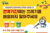 [ 중앙뉴스미디어 ] 파주시는 환경미화원 휴무 보장을 위해 추석 연휴 기간인 10월 4일부터 10월 6일, 10월 8일부터 10월 9일까지는 생활폐기물을 배출해서는 안 되며, 이 기간 동안에는 생활쓰레기 수거가 중단된다고 밝혔다. 단, 운정신도시 내 자동집하시설이 설치된 지역은 추석 연휴에도 평소처럼 집하시설을 통해 종량제봉투를 정상적으로 배출할 수 있고, 연휴 마지막 날인 10월 9일 18시부터는 쓰레기 배출이 가능하다. 시는 추석 명절과 아시아태평양경제협력체(APEC) 정상회의를 계기로, 행정안전부 주관 ‘대한민국 새단장 캠페인’에 동참해 9월 22일부터 10월 1일까지 중점 청소 및 단속 기간으로 지정했다. 이 기간 동안 추석맞이 대청소를 통해 청소 취약지역을 정비하고, 쓰레기 무단투기 예방을 위한 집중 단속을 실시해 연휴 기간 동안 청결한 환경을 유지할 계획이다. 또한 시는 연휴 기간인 10월 3일부터 10월 9일까지 시민들의 불편을 최소화하기 위해 상황반을 운영하고, 청소대행업체에서는 15개 기동반을 배치해 쓰레기 관련 불편 사항과 민원을 신속하게 처리할 계획이다. 특히 야당역, 운정역,