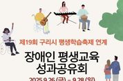 [ 중앙뉴스미디어 ] 구리시는 장애인 평생학습 도시 지정 3주년을 맞아, 장애인의 학습 성과를 공유하고 시민을 대상으로 장애 인식 개선을 위한 공감 프로그램을 제공하기 위해 오는 9월 26일(금)부터 28일(일)까지 구리한강시민공원에서'장애인 평생교육 성과공유회'를 개최한다고 밝혔다. 이번 행사는 '제19회 구리시 평생학습 축제'와 연계해 진행된다. 성과공유회에서는 장애인과 평생학습 관계자들이 한 해 동안 갈고닦은 학습 결과물을 시민들과 나누며 화합의 장을 마련한다. 구리시 관내 6개 장애인 기관·단체가 참여해 ▲발달장애인 미술 작품 전시 ▲슐런 체험(네덜란드 전통 보드게임, 나무 원판을 미끄러뜨려 점수를 내는 놀이) 및 점자 홍보 ▲까롬 경기(인도 전통 보드게임, 손가락으로 작은 원판을 튕겨 포켓에 넣는 놀이) 체험 ▲장애 인식 개선 캠페인 등을 운영할 예정이다. 아울러, 장애인 평생학습 도시 지정 3주년을 기념하고 장애인 인식 개선을 위해 발달장애인으로 구성된 관악밴드 '드림위드 앙상블'팀이 무대에 올라 아름다운 하모니를 선사한다. 구리시는 장애인의 평생학습 참여기회를 넓히고, 지역 기관과의 네트워크 강화를