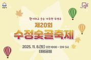 [ 중앙뉴스미디어 ] ‘제20회 수정숯골축제’가 오는 11월 8일 오전 10시~오후 3시 태평공원(수정구 수정로 7)에서 열린다. 성남시 수정구가 후원하고 수정숯골축제 추진위원회가 주최·주관해 열리는 이번 행사는 ‘활기차고 웃음 가득한 수정구’를 주제로 진행된다. 이날 태평공원 다목적 잔디마당에서 성남시립국악단의 식전공연을 시작으로, 시흥동의 난타 공연, 수진1동의 라인댄스 등 8개 동별 대표 공연과 제기차기, 단체투호 등의 민속놀이 경연이 펼쳐진다. 초청 가수의 축하공연도 열린다. 출연진은 ‘바람 바람 바람’ 등의 히트곡을 가진 김범룡, 쌍권총 춤으로 유명한 ‘오직 하나뿐인 그대’의 심신, 미스트롯2에 출연해 화제를 모은 주미 등이다. 올해 성남 갓텔런트 예술단으로 선발된 아인스바움(윈드 앙상블), 김수아(보컬), 윤여찬·임민영(라틴댄스) 팀도 출연해 행사 분위기를 달군다. 행사장 곳곳에는 배틀 로봇, 드론 축구 등의 4차산업 체험존, 페이스페인팅, 캐리커처, 자원순환 활동 등의 체험 부스, 먹거리 부스 등 다양한 즐길 거리가 마련된다. 이 외에도 텔레비전,