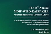 [ 중앙뉴스미디어 ] 지식재산처는 세계지식재산기구(WIPO) 및 한국발명진흥회(KIPA)와 공동으로 11월 3일~ 6일까지 한국지식재산센터(서울 강남구)에서 '국제 지식재산 전문가 인증과정(AICC)'을 개최한다. 올해는 지식재산처·WIPO·KIPA가 공동 개발한 지식재산(IP) 비즈니스 교육 e러닝 콘텐츠인 IP 파노라마 2.0을 활용해 온라인 과정을 수료한 119개국 1,364명 중 23개국 35명의 우수 학습자를 최종 선발해 서울에서 오프라인으로 심화 교육을 진행한다. 이번 교육을 통하여 세계 각국의 지식재산 전문가들이 지식재산 경영 및 활용 전략을 수립하는데 도움을 받을 수 있을 것으로 기대된다. 이번 오프라인 교육 과정은 국제 비즈니스 경영 측면에서 지식재산의 효과적인 활용과 관련된 ▲ 지식재산(IP) 가치 평가 및 금융 ▲ 인공지능(AI) 등 최신 IP 동향 ▲ 특허등급 평가 및 활용 사례 ▲ IP 면허 전략 ▲ IP 면허 협상을 위한 실습 등으로 구성됐다. 특히, 창업초기기업ㆍ개척기업을 위한 IP 경영전략 수립 방법, 분쟁 대응전략 등의 내용도 포함되어 있어 경영 실무역량 배양에 도움이 될 것으로 기대된다.