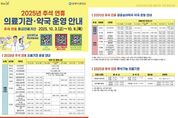 [ 중앙뉴스미디어 ] 양주시가 추석을 앞두고 오는 10월 3일부터 9일까지 7일간 ‘추석 연휴 응급진료체계’를 운영한다. 시는 연휴 기간 동안 의료 공백을 줄이기 위해 24시간 진료가 가능한 당직의료기관인 양주예쓰병원을 비롯해, 일자별로 지정된 병의원과 약국을 운영한다. 특히, ▲국군양주병원은 24시간 응급실을 ▲나무정원여성병원은 산과 응급실 ▲에스엘서울병원은 정형외과 응급 외상 진료를 운영한다. 추석 당일에도 더플러스24의원과 두리이비인후과의원이 정상 진료 한다. 투석 환자를 위해 더맑은내과의원과 양주예쓰병원을 운영하며, 선암건강약국과 참사랑약국은 공공심야약국을 운영해 야간 시간대에도 의약품 구입이 가능하다. 단, 기관별 운영 일정과 진료 시간은 변동될 수 있으므로 방문 전 반드시 해당 기관에 전화로 확인해야 한다. 양주시보건소는 연휴 기간 동안 상황근무반을 운영해 관내 의료기관과 약국 진료 일정 안내 및 응급진료 체계 점검을 통해 시민 불편을 최소화할 계획이다. 또한 ▲응급의료포털 E-Gen 홈페이지 ▲응급의료 정보제공 앱 ▲QR코드를 통해서도 가까운 의료기관과 약국 정