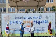 [ 중앙뉴스미디어 ] 지난 21일 ‘제3회 동탄5동 한마음 체육대회’가 동탄5동 체육진흥회 주관으로 다원이음터 축구장에서 성황리에 개최됐다. 이번 대회는 주민들의 화합과 소통을 통해 건강을 증진하고 공동체 의식을 다지기 위해 마련됐으며, 400여 명의 주민과 내빈들이 함께해 활기찬 분위기를 더했다. 행사는 풍물 공연과 색소폰 연주로 흥겨운 막을 올렸고, 개회식에서는 모범시민 표창 수여와 내빈들의 축사가 이어졌다. 또한, 동탄5동 체육진흥회와 감탄정형외과가 의료 지원·후원 협약을 체결해 향후 체육대회를 비롯한 다양한 동 행사에서 의료 지원과 후원을 지속하기로 약속하며 지역사회 상생의 의미를 더했다. 본 경기는 볼풀공 서바이벌, 큰 공 배구, 줄다리기 등 남녀노소가 모두 참여할 수 있는 명랑운동회 종목으로 진행돼 웃음과 열기가 가득했다. 이어진 태권도 축하공연은 참가자들에게 힘찬 에너지를 전하며 분위기를 한층 끌어올렸다. 또한 체험부스 운영과 경품 추첨 이벤트도 마련돼 가족 단위 참가자들에게 다채로운 즐길 거리를 제공했다. 풍성한 상품과 이벤트는 주민들의 큰 호응을 얻으며 축제의 열기를 더