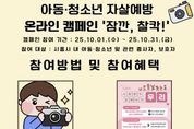 [ 중앙뉴스미디어 ] 시흥시자살예방센터는 오는 10월 1일부터 31일까지 한 달간 아동ㆍ청소년을 대상으로 생명존중 인식 확산 캠페인을 운영한다. 이번 캠페인은 아동ㆍ청소년이 심리적 지지를 얻고 생명의 소중함을 되새기도록 돕는 한편, 이를 누리소통망(SNS)을 통해 또래와 나눌 수 있도록 마련됐다. 캠페인 참여 방법은 시흥시 관내 교육기관, 행정복지센터, 아동ㆍ청소년 관련 기관 등에 부착된 자살 예방 홍보 스티커를 촬영한 후, 개인 누리소통망(인스타그램)에 스토리 또는 게시물 형태로 올리면 된다. 이후 해당 게시물을 캡처해 정보무늬(큐알코드)를 통해 연결된 네이버 폼에 제출하면 참여가 완료된다. 이기연 시흥시자살예방센터장은 “이번 캠페인이 아동ㆍ청소년들이 온라인 공간에서 자신과 친구들의 소중함을 되돌아보는 계기가 되길 바란다”라며 “많은 청소년이 적극적으로 동참해 건강한 생명존중 문화가 확산하길 기대한다”라고 말했다.