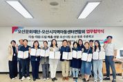 [ 중앙뉴스미디어 ] 오산문화재단은 9일 오산시지역아동센터연합회와 오산 청소년들이 건강한 사회 구성원으로 성장할 수 있도록 상호협력을 하기 위한 업무협약을 체결했다고 밝혔다. 협약식은 오산문화재단에서 열렸으며, 최상열 오산문화재단 사무국장과 이광훈 오산시지역아동센터연합회장 및 관계자들이 참석한 가운데 진행됐다. 오산시지역아동센터연합회는 '아동복지법' 및 '사회복지사업법'에 근거해 방과 후 돌봄이 필요한 지역 아동의 건전한 성장을 지원하고 종합적인 복지서비스를 제공하는 단체로, 2025년 9월 현재 9개 센터에서 총 272명의 아동을 돌보고 있다. 이번 협약은 청소년들의 열정, 성장, 행복, 창의의 가치를 위해 문화예술교육 및 문화향유를 위한 협력의 중요성을 인식하고 양 기관 간 신뢰감 형성과 필요한 지역 자원 연계 등 상호 협력함을 목적으로 추진됐다. 이광훈 오산시지역아동센터연합회장은 “그동안 ‘꿈을 향해 날개짓하다’ 행사 때마다 적극적으로 도움을 주셔서 감사한 마음을 가지고 있었다”며 “이제는 상호협력으로 센터에서도 청소년들을 위한 문화재단의 문화예술교육 및 다양한 사업에 대해 적극적으로 연계할