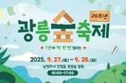 [ 중앙뉴스미디어 ] 남양주시는 오는 27일과 28일 이틀간 진접읍 광릉숲 일원에서 ‘제20회 광릉숲축제’를 개최한다고 밝혔다. 광릉숲은 유네스코 생물권 보전지역으로 지정된 곳으로, 평소에는 일반인의 출입이 통제되지만 매년 축제 기간에만 시민들에게 개방돼 숲의 의미와 가치를 알리는 역할을 해왔다. 올해 축제는 20번째를 맞이해 더욱 특별한 의미를 담았다. 축제는 오전 10시부터 오후 5시까지 진행되며, 아름다운 광릉숲을 배경으로 다양한 친환경 축제 프로그램과 부대행사가 숲길 곳곳에서 다양하게 준비된다. 주요 프로그램은 광릉숲뚜벅이(숲길걷기), 광릉숲스무살(기념팝업), 광릉숲테이지(버스킹), 광릉숲사진관(포토존), 광릉숲선생님(숲해설), 광릉숲멍쉬멍(쉼터), 광릉숲만지작(체험), 광릉숲요가원(숲속요가), 광릉숲놀이터(나무놀이) 등이다. 부대행사로는 광릉숲마을장(플리마켓), 광릉숲사람들(시민참여공연), 광릉숲먹거리(먹거리부스) 등이 운영돼 시민들이 함께 만들고 즐기는 축제의 장이 될 예정이다. 개막식은 27일 오전 11시 봉선사 일주문 옆 메인무대에서 열리며, 국악인 하윤주와 테너 이동신이