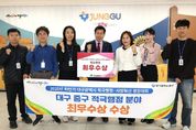 [ 중앙뉴스미디어 ] 대구 중구는 대구시가 주최한 ‘2025년 적극행정·시정혁신 경진대회’에서 ‘전국 최초! 교동 음식물 수거 실명제로 악취도 잡고 시민의 마음도 잡다’ 사례로 최우수상을 받았다고 밝혔다. 최근 교동 일대는 젊은 층이 즐겨 찾는 음식점과 주점이 급격히 늘어나면서, 새벽 시간대에 배출된 음식물 쓰레기 용기가 하루 종일 인도에 방치되는 문제가 심화했다. 악취와 미관 훼손, 보행 불편, 관광객 민원까지 이어지며 기존의 단속 중심 행정으로는 한계가 있었다. 이에 중구 환경과는 ‘현장에서 답을 찾자’라는 적극행정 정신 아래 전국 최초로 ‘음식물 수거 실명제 기반 생활환경 개선사업’을 기획·추진했다. 이 제도는 각 업소의 간판 이미지를 담은 전용 스티커를 음식물 수거 용기에 부착해 소유주를 명확히 표시하는 방식으로, 수거 후에는 용기를 해당 업소 앞으로 즉시 되돌려놓아 무분별한 방치와 악취 발생을 원천 차단했다. 사업 추진 과정에서 환경과 직원들은 교동 일대 61개 업소를 직접 방문해 170여 개 용기를 세척하고, 간판 이미지를 촬영해 스티커를 제작·부착했다. 또 상