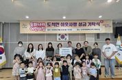 [ 중앙뉴스미디어 ] 광주시 도척면에 위치한 동화나라어린이집은 지난 22일 학부모와 원아 30여 명이 함께 도척면 행정복지센터를 방문해 프리마켓 수익금 145만 3천 원을 어려운 이웃을 위해 써달라며 전달했다. 이번 성금은 지난 6월 27일 어린이집에서 지역 주민과 함께 개최한 프리마켓(바자회)에서 발생한 수익금에 교사들과 원아들이 십시일반 모은 기탁금을 더해 마련됐다. 장경임 원장은 “매년 어린이집에서 프리마켓을 열어 수익금을 기탁하고 있는데 아이들이 이 과정을 통해 어려운 이웃을 배려하고 나눔의 의미를 배우는 것 같다”며 “앞으로도 아이들이 따뜻한 마음을 가진 어른으로 성장할 수 있도록 최선을 다하겠다”고 말했다. 이에 대해 고형근 면장은 “이웃을 위해 지속적으로 나눔을 실천해 주시는 동화나라어린이집 원장님과 학부모님들께 깊이 감사드린다”며 “전달해 주신 성금은 지역의 어려운 이웃들을 위해 소중히 사용하겠다”고 전했다. 한편, 동화나라어린이집은 2018년부터 매해 프리마켓을 열어 수익금을 기탁하며 지역사회의 교육기관으로서 나눔과 실천의 모범을 보이고 있다.