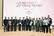 [ 중앙뉴스미디어 ] 포천시는 지난 1일 시청 대회의실에서 제23회 포천시민의 날을 기념해 2025년 한 해 동안 지역 발전에 기여한 유공자들을 대상으로 표창 수여식을 개최했다. 이날 행사에는 백영현 시장을 비롯해 임종훈 포천시의회 의장, 김용태 국회의원을 대신한 김길주 사무국장과 수상자 등 100여 명이 참석해 자리를 빛냈다. 올해 표창은 △경기도지사 표창 8명 △포천시장 표창 65명 △포천시의회 의장 표창 14명 △국회의원 표창 14명 등 총 101명에게 수여했다. 수상자들은 지역사회 봉사, 문화·체육 진흥, 농업 발전, 지역경제 활성화 등 다양한 분야에서 묵묵히 헌신한 공로를 인정받았다. 백영현 포천시장은 “포천의 오늘을 있게 한 주인공은 바로 시민 여러분”이라며, “각자의 자리에서 보여주신 헌신 덕분에 포천이 함께 성장하는 희망의 도시로 나아갈 수 있었다. 앞으로도 모두가 행복한 도시를 만들기 위해 최선을 다하겠다”고 말했다. 한편, 제23회 포천시민의 날 기념 행사는 10월 12일 포천종합운동장에서 열릴 예정이다.