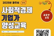 [ 중앙뉴스미디어 ] 파주시는 사회적가치 실현을 위한 사회적경제 생태계 확산을 목표로 ‘2025년 하반기 사회적경제 기업가 양성 교육’을 운영한다. 교육은 10월 14일부터 11월 27일까지 매주 화·목 19~21시에 진행되며, 금촌어울림센터 1층에서 총 14강으로 진행된다. 대상은 관내 사회적경제 창업 희망자 및 관심 시민이며, 정원은 선착순 30명이다. 교육과정은 사회적경제의 철학과 기업가정신을 시작으로, ▲협동조합·마을기업·사회적기업의 제도 이해 ▲소셜 비전 수립 ▲지역자원 발굴·활용 ▲홍보·마케팅 ▲조직 운영 ▲사회적가치 체계 구축까지 창업 전 과정을 단계적으로 다룬다. 특히 생성형 인공지능(AI)을 활용한 사업계획서 작성 실습으로 변화하는 환경에 바로 적용할 수 있는 역량을 기를 수 있도록 구성했다. 특화 프로그램으로 업종별 자문상담을 마련해 유통·제조, 돌봄·사회서비스, 교육·관광·체험, 환경·자원순환 분야의 현직 사회적경제 기업 대표들이 사례 중심의 밀착 상담을 제공한다. 또한 창업 단계부터 사회적기업 인증까지의 과정을 성공적으로 거친 선배 기업가와의 만남도 진행되어 실제 경험에서 나온