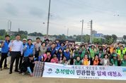 [ 중앙뉴스미디어 ] 평택시 청북읍 행정복지센터는 지난 26일 민족 최대 명절 추석을 앞두고 청북공설공원묘지 일대에서 민관이 함께한 대청소 활동을 펼쳤다. 이날 이장협의회와 새마을지도자회, 새마을부녀회 등 3개 단체와 청북읍 행정복지센터 직원 등 50여 명이 참여해 묘지 주변 도로와 공용부지를 중심으로 잡초 제거, 쓰레기 수거 등 청소 취약 구간을 집중 정비하고, 무단으로 버려진 폐기물을 말끔히 수거하는 등 쾌적한 성묘 환경 조성에 힘썼다. 참여 단체 대표들은 “우리 마을 환경은 우리가 지킨다는 마음으로 앞으로도 환경 정화 활동에 적극 동참하겠다”라고 입을 모았다. 이철은 청북읍장은 “추석을 맞아 깨끗한 마을 만들기를 위해 자발적으로 동참하신 모든 분께 깊이 감사드리며, 앞으로도 정기적인 환경 정비 활동과 주민 참여 확대를 통해 쾌적하고 품격 있는 청북읍을 만들어 가겠다”라고 말했다.