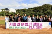[ 중앙뉴스미디어 ] 양평군 서종면은 지난 17일 오후 1시, 서종면 문호리 968 일대 문호천 생태공원에서 ‘서종면 흙향기 맨발길’ 임시 운영을 기념하는 걷기 행사를 개최했다. 이번 행사는 서종면장을 비롯해 지역 기관·단체장, 각 마을 이장, 주민 등이 함께 참여해 맨발로 자연을 체험하며 건강 증진과 소통의 의미를 나누는 시간으로 진행됐다. ‘서종면 흙향기 맨발길’은 하늘에서 바라보면 서종면의 ‘서’ 자를 형상화한 걷기 코스로, 문호천의 아름다운 자연경관과 어우러진 생태 친화형 산책길이다. 특히, 약 1,500평 규모에 만개한 코스모스 꽃밭은 행사 당일 주민들과 방문객들의 눈길을 사로잡으며 큰 호응을 얻었다. 이날 걷기 행사에는 지역 주민은 물론 외부 관광객들도 참여해 지역에 활기를 불어넣었으며, 가을 정취를 물씬 느낄 수 있는 코스모스 경관과 생태공원이 어우러진 맨발길은 서종면의 새로운 관광 명소로 자리매김할 것으로 기대된다. 홍주표 서종면장은 “흙향기 맨발길은 주민과 관광객 모두가 자연 속에서 치유와 여유를 느낄 수 있는 서종면의 새로운 명소”라며, “앞으로도 지속적인 정비와 편의시설 보완을