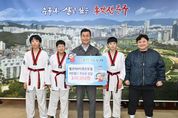 [ 중앙뉴스미디어 ] 힘찬태비태권도장이 11월 7일 오후 4시 30분 중구청 구청장실을 찾아 울산사회복지공동모금회를 통해 이웃돕기 후원금 30만 원을 전달했다. 이번 전달식에는 김영길 중구청장과 김아롱 힘찬태비태권도장 관장, 태권도장 아동 등 5명이 참석했다. 힘찬태비태권도장은 ‘2025년 종갓집 중구 체육대회’ 입장식(퍼레이드) 행사에 참여해 학성동 주민자치위원회로부터 받은 사례비를 전액 기부했다. 해당 후원금은 지역 내 홀몸 어르신 3명에게 각 10만 원씩 전달될 예정이다. 김아롱 힘찬태비태권도장 관장은 “아이들과 함께 지역 행사에 참여하고 나눔도 실천할 수 있어서 뜻깊다”며 “앞으로도 주변에 희망과 사랑을 전하기 위해 노력하겠다”고 말했다. 김영길 중구청장은 “어려운 이웃을 위해 따뜻한 마음을 모아주셔서 감사드린다”며 “겨울을 앞두고 홀몸 어르신의 생활을 살피고 지원하는 데 후원금을 잘 활용하겠다”고 밝혔다. [뉴스출처 : 울산시중구]