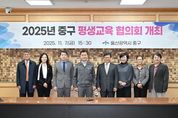 [ 중앙뉴스미디어 ] 울산 중구가 11월 7일 오후 3시 30분 중구청 소회의실에서 2025년 중구 평생교육협의회를 개최했다. 중구 평생교육협의회는 평생학습 계획 수립·시행 및 제도 개선, 평생교육 유관기관 협력 증진에 관한 의견을 제시하는 기구로, 의장인 김영길 중구청장과 평생교육 전문가, 장애인 평생교육 관계자, 강북교육지원청 관계자 등 12명으로 구성돼 있다. 이날 참석자 8명은 올 한 해 평생학습 사업 성과와 내년도 평생학습 사업 추진계획 등을 살펴보고 다양한 의견을 나눴다. 한편, 중구는 지난 2007년 평생학습도시로 지정된 이후 다양한 평생학습 사업을 운영하며 평생학습 저변 확대에 힘쓰고 있다. 김영길 중구청장은 “평생학습을 통해 지역의 발전을 도모할 수 있도록 위원들의 적극적인 협조를 부탁드린다”며 “앞으로도 언제, 어디서나, 누구나 공평하게 배움의 기회를 누릴 수 있도록 평생학습 문화 확산에 힘쓰겠다”고 밝혔다. [뉴스출처 : 울산시중구]