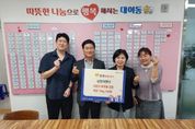 [ 중앙뉴스미디어 ] 시흥시 연성동 행정복지센터(동장 김상동)는 지난 10월 1일 원디자인 김원종 대표이자 연성동 지역사회보장협의체 위원이 지역 내 어려운 이웃을 위해 젤리 10상자를 후원했다고 밝혔다. 이번에 전달된 후원품은 관내 장애인시설에 배부됐으며, 연성동은 명절을 앞두고 시설을 방문해 안부를 묻고 애로사항을 청취했다. 시흥시 장애인 주간보호시설인 하나더하기 안덕희 대표는 “이렇게 매번 후원을 받기만 해도 되는지 모르겠다”라며 “명절 연휴 전에 시설을 이용하는 대상자들에게 잘 전달하겠다”라고 감사 인사를 전했다. 김상동 연성동장은 “지난번에 이어 다시 귀한 나눔을 실천해 준 김원종 대표에게 깊이 감사드린다”라며 “후원품은 명절을 맞은 장애인들에게 잘 전달하겠다”라고 말했다.