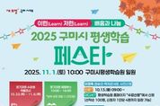 [ 중앙뉴스미디어 ] 구미시는 11월 1일 오전 10시부터 평생학습원 일원에서 ‘2025 구미시 평생학습 페스타’를 개최한다. 이번 행사는 한 해 동안 시민들이 평생학습을 통해 쌓은 결실을 나누고, 배우며 성장한 시민들의 이야기를 함께 공유하는 자리다. 단순한 성과 전시를 넘어, 배움이 일상이 되는 도시 구미의 비전을 시민과 함께 체감하는 축제로 마련됐다. 전시 부문에서는 민화와 여행사진작가반 등 13개 강좌 수강생들이 출품한 250여 점의 작품이 평생학습원 1·2층 로비에 전시된다. 공연 부문에서는 난타와 라인댄스 등 8개의 평생학습 수강생 및 동아리 회원들이 소공원 무대에서 발표회를 개최한다. 체험 프로그램도 다채롭다. 시민들은 단순 관람을 넘어 평생학습 정기강좌를 직접 체험해볼 수 있도록 손뜨개방과 어반스케치 등 14개 강좌의 체험부스가 주차장에 마련된다. 사전 접수로 인기가 높았던 원데이 클래스는 ‘종이비행기 국가대표 이정욱 선수의 렉쳐콘서트’로 구성되어 가족 단위 참가자들에게 소중한 추억을 선사한다. 구미소재 3개 대학도 페스타에 힘을 보탠다. 금오공대의 캘리그라피, 구미대의 타로심리상담과 경운대의 심