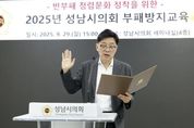 [ 중앙뉴스미디어 ] 성남시의회는 29일 의회 4층 세미나실에서 전 의원을 대상으로 부패방지교육을 실시했다. 이번 교육은 지방의원에게도 적용되는 '공직자의 이해충돌방지법'의 취지를 되새기고, 사적 이해관계와 겸직 등과 관련한 사회적 요구에 적극 부응하기 위해 마련됐다. 교육에 앞서 의원들은 청렴서약서에 서명했으며, 안광림 부의장이 대표로 서약을 낭독하며 공정한 의정활동과 생활 속 청렴 실천을 다짐했다. 안광림 부의장은 “추석을 앞두고 부패방지교육을 함께하게 되어 뜻깊게 생각한다”며 “오늘의 배움을 계기로 청렴 의지를 더욱 굳건히 하고, 시민이 신뢰하는 성남시의회로 발전해 나가겠다”고 말했다.