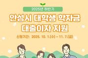 [ 중앙뉴스미디어 ] 안성시는 오는 10월 1일부터 11월 7일까지 ‘2025년도 하반기 안성시 대학생 학자금 대출이자’ 지원 신청을 받는다. 지원 대상은 공고일(2025. 10. 1.)기준으로 안성시에 주민등록 주소를 두고 재학(휴학 포함)중인 대학(원) 재학생(휴학생)이다. 지원 대상자로 선정되면 대상자가 한국장학재단에서 대출받은 학자금에 대한 2025년 상반기(1월~6월) 발생 이자를 안성시가 지급하게 된다. 지급은 대출 계좌 원리금에서 차감하는 방식으로 진행되며, 지원 내역은 12월 지급이 확정된 시점에 한국장학재단 인터넷 홈페이지에서 확인할 수 있다. 신청 방법은 주소지 읍·면·동 행정복지센터 또는 안성시청(미래교육과)으로 방문하여 접수하면 된다. 안성시 관계자는 “학자금 대출이자 지원 사업을 통해 대학생들의 학업 부담을 완화하고, 학업에 전념할 수 있는 환경을 조성하는데 도움이 되길 바란다”고 전했다.