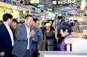 [ 중앙뉴스미디어 ] 김경일 파주시장은 지난 1일 추석 명절을 앞두고 금촌전통시장과 문산자유시장을 찾아 상인들과 시민들을 만나며 따뜻한 명절 분위기를 조성했다고 밝혔다. 김 시장은 지역화폐(파주페이)로 각종 물품을 구매하며 상인들을 격려했으며, 지역경제 활성화를 위한 민생회복 소비쿠폰 2차 지급에 시민 모두가 빠짐없이 신청해 줄 것과 9월 15일부터 무제한 할인쿠폰을 제공하고 있는 공공배달 앱 ‘배달특급’의 적극적인 이용을 부탁하며 지역경제 현장의 목소리를 청취했다. 김경일 파주시장은 “어려운 경기 여건 속에서도 항상 같은 자리에서 꿋꿋이 일하고 있는 소상공인들이야말로 지역경제의 버팀목”이라며 “소비 위축과 고물가·고금리로 어려움을 겪는 소상공인을 돕고 지역경제 활성화를 위해 최선을 다하겠다”라고 말했다. 파주시는 장기화된 경기 침체 속 민생경제 안정을 위해 올해 전국 최대 규모인 3,189억 원의 파주페이를 발행했다. 특히 올해 설(2월)과 가정의 달(5월)에 이어 추석이 있는 10월에도 파주페이 충전한도를 최대 100만 원으로 확대해 시민의 가계 부담 경감에 힘쓰고 있다.
