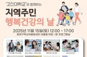 [ 중앙뉴스미디어 ] 부산 동래구는 오는 11월 15일 낮 12시부터 동래구 혁신어울림센터(동래구 금강로 129) 1층 어울림 마당에서 고신대학교와 함께 ‘지역 주민 행복 건강의 날’ 행사를 개최한다고 밝혔다. 이번 행사는 지역 주민의 건강 증진과 삶의 질 향상을 위해 마련된 것으로, 어린이부터 성인까지 전 연령층이 참여할 수 있다. 혁신어울림센터 행사장 내 각 부스는 체험 내용과 참여 인원에 따라 운영시간이 상이하며, 모든 프로그램은 현장에서 선착순 접수로 참여할 수 있다. 행사에는 고신대학교의 복음병원과 웰니스센터가 참여해 전문적인 건강 체험과 상담 프로그램을 진행한다. 주요 프로그램으로는 △신체 재활 건강 체험(인지 재활치료, 손 기능 평가) △언어·목소리·기억력 검사 △영양판정 및 상담 △기본 건강진단 △탄력밴드 운동 및 테이핑 요법 체험 △어린이 청진기 만들기 체험 등이 운영될 예정이다. 동래구 관계자는“이번 행사는 주민들이 쉽고 즐겁게 건강을 점검하고, 일상 속 건강관리 습관을 기르는 데 도움을 드리기 위해 준비했다”라며 “고신대학교와의 협력을 통해 전문성과 신뢰도를 높인 만