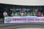 [ 중앙뉴스미디어 ] 안성시 서운면 새마을부녀회가 지난 26일 지역 내 취약계층과 홀몸 어르신들을 위해 ‘행복한 반찬 나눔 봉사’를 실시했다. 이날 봉사활동에는 부녀회원 20여 명이 참여해 시원한 물김치를 담그고 고추무침 등 밑반찬을 준비했으며, 관내 독거노인과 저소득층 등 100여 가구에 직접 전달하여 여름철 무더위로 식사 준비가 어려운 주민들에게 든든한 한 끼를 제공했다. 손경순 회장은 “정성껏 준비한 반찬이 어려운 이웃들의 식탁에 조금이나마 힘이 됐으면 한다”며 “앞으로도 서운면 새마을부녀회가 앞장서서 다양한 나눔 활동을 이어가겠다”고 말했다. 양승동 서운면장은 “바쁜 일상 속에서도 지역 어르신들과 이웃을 위해 직접 반찬을 만들고 전달해주신 부녀회원들게 감사드린다”며 “앞으로도 복지 사각지대를 해소하고 소외된 이웃들이 따뜻한 손길을 느낄 수 있도록 최선을 다하겠다”고 말했다.