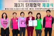 [ 중앙뉴스미디어 ] 대구시교육청은 2025년 10월 29일 오전 11시, 대구학교비정규직연대회의와 ‘제3기 단체협약 체결식’을 개최한다고 밝혔다. 이는 지난 2022년 12월 27일 제3기 단체교섭을 시작한 후, 올해 9월까지 본교섭 16회, 실무교섭 54회를 거쳐 최종 협약에 이른 것이다. 대구시교육청은 단체교섭 기간 중 우선협약을 통해 2024년 2월 19일 산업재해근로자‘생활안정지원금’제도를 우선 시행하고, 폐암 확진 근로자의 근무환경 개선을 위해 본인 희망에 따라 직종전환(조리종사원 → 특수교육실무원)을 기 시행한 바 있다. 아울러 지난 추석부터 당직경비원의 근무여건 개선을 위해 명절(설, 추석) 기간 중 각 3일간의 유급휴일을 선제적으로 부여했다. 이번에 체결하는 단체협약에는 학생 교육활동 및 현장의 행정 지원을 강화하기 위해 ▲교무실무사 직종통합 및 단계적 상시 전환 추진, ▲방학 중 비근무자인 사서 직종(10일→15일) 및 조리 직종(8일→12일)의 방학 중 근무일수 확대를 추진한다. 교육공무직원의 근무여건 개선 및 복지 향상을 위해 ▲정년퇴직준비휴가 신설(3~5일),