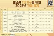 [ 중앙뉴스미디어 ] 성남시는 오는 10월 20일부터 12월 29일까지 중원구 하대원동 1인 가구 힐링스페이스에서 총 150명이 참여하는 7개 과목(과목별 20~30명)의 특강을 연다. 이번 특강은 문화·정서·예술 등의 분야에서 1인 가구의 자기 계발 역량을 높이고, 사회적 관계망 확대를 지원하기 위해 마련된다. 운영 과목은 △인지기능 유지 등 성공적 노화 △감정 코칭 △힐링 아트 △힐링 노래 △보드게임 △시네마 토크 △독서토론 등이다. 과목별 전문 강사를 초빙해 각각 4회 과정으로 특강을 진행한다. 성남시 거주 1인 가구면 누구나 참여할 수 있다. 참여 신청은 성남시 평생학습 통합플랫폼 ‘배움숲’이나 전화, 방문 등 다양한 방법으로 할 수 있다. 과목별 선착순 접수하며, 수강료는 무료다. 단, 재료비는 자부담이다. 성남시 힐링스페이스는 지난 2023년 7월 18일 전국 첫 직영 체제로 설치된 1인 가구 지원시설이다. 성남지역 38만3004가구의 35.1%를 차지하는 1인 가구(13만4409가구)를 정책적으로 지원하는 역할을 한다. 이번