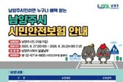 [ 중앙뉴스미디어 ] 남양주시는 27일부터 전 시민을 대상으로 ‘2025~2026 시민안전보험’을 실시한다고 밝혔다. 이번 시민안전보험은 각종 재난 및 일상생활 속 사고로부터 시민을 보호하고 생활 안정을 도모하기 위해 마련됐다. 남양주시에 주민등록 된 시민이라면 누구나 별도 절차 없이 자동 가입되며, 보험기간은 2025년 8월 27일부터 2026년 8월 26일까지 1년이다. 보험료는 시가 전액 부담한다. 보장항목은 총 10종으로 △상해사망 및 후유장해 △폭발·화재·붕괴·산사태 상해사망 △대중교통 이용 중 상해사망 및 후유장해 △화상수술비 △스쿨존 및 실버존 교통사고 부상치료비 △자연재해(일사병·열사병 포함) 사망 △사회재난(감염병 제외) 사망 등을 포함한다. 보장금액은 항목에 따라 최대 1,500만 원까지 지원되며, 보험기간 중 사고가 발생한 경우 사고일로부터 3년 이내에 보험금을 받을 수 있다. 해당 보험은 타 보험과 관계없이 중복 보장이 가능하다. 보험금 청구 방법 및 기타 관련 문의는 시민안전보험 콜센터를 통해 안내받을 수 있다. 시 관계자는 "시민안전보험은 누구나 예기치 못한 재