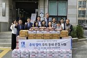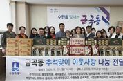[ 중앙뉴스미디어 ] 수원시 권선구 금곡동 행정복지센터는 지난 29일, 추석 명절을 맞이하여 ‘추석 명절 이웃사랑 나눔 전달식’을 개최했다. 이번 전달식에는 △금곡동 주민자치회 △통장협의회 △지역사회보장협의체 △새마을문고 △방위협의회 △수원자율방범대 칠보지대 △무학사 △용화사 △서호새마을금고 △수원농협 금곡지점 △시립금곡동어린이집 △시립금호어린이집 △백양TNS 등 지역 내 다양한 단체 및 유관기관들이 참여해 따뜻한 명절 분위기를 조성했다. 참석자들은 △백미 △라면 △상품권 △선물세트 등 다채로운 명절 선물을 준비했으며, 이 물품들은 추후 취약계층 주민들에게 전달될 예정이다. 장성임 동장은 “어려운 시기에도 이웃사랑을 실천해 주신 모든 단체와 기관에 깊은 감사를 드리며 이웃과 함께 정과 사랑을 나누는 추석 명절이 되기를 바란다”라고 말했다.