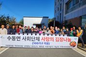 [ 중앙뉴스미디어 ] 남양주시는 10일 수동면에서 7개 사회단체가 함께 취약계층을 위한 ‘사랑의 김장 나눔’ 행사를 진행했다고 밝혔다. 이번 행사는 경기도농수산진흥원이 주관한 ‘경기농식품 나눔문화 확산사업’ 공모에 수동면 주민자치회가 선정돼, 농산물 소비 촉진 및 취약계층 대상 지역공동체의 나눔 문화 확산을 위해 마련됐다. 행사에는 수동면 이장협의회, 주민자치회, 새마을남녀지도자, 체육회, 바르게살기위원회, 적십자회, 지역사회보장협의체 등 7개 단체, 80여 명이 힘을 모아 김치를 정성껏 담갔다. 이날 마련된 김치 100통은 수동면 관내 독거노인, 장애인, 복지사각지대에 놓인 저소득층 가정 등에 전달됐다. 특히 각 사회단체별로 회원들이 김장 김치를 직접 전달하며 이웃의 안부를 살폈다. 이진춘 수동면장은 “경기도의 지원과 지역 7개 단체의 협력이 더해져 이웃에게 따뜻한 마음을 전할 수 있었다”며 “앞으로도 정성과 마음을 담은 나눔이 계속될 수 있도록 적극 지원하겠다”고 말했다. 수동면은 앞으로도 이웃과 함께하는 따뜻한 나눔과 돌봄이 일상 속에 스며들 수 있도록 지속적인 노력을 이어갈 예정