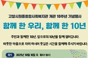 [ 중앙뉴스미디어 ] 고양시원흥종합사회복지관은 오는 10월 18일 오전 10시부터 오후 4시까지 도래울마을1단지 중앙공원에서 개관 10주년 기념행사 ‘함께한 우리 함께한 10년’을 개최한다. 이번 행사는 복지관과 함께 도래울마을1단지 내에서 공동체를 이뤄온 원흥도래울마을1단지관리사무소, 시립원흥어린이집의 협력으로 마련됐다. 복지관과 함께한 지역주민들에게 감사의 마음을 전하고, 이웃 간 화합의 장을 만들고자 다채로운 프로그램으로 기획됐다. 행사는 고양시립합창단의 식전 공연으로 문을 열고 ▲표창 수여 ▲비전 선포식 ▲후원 전달식 등이 진행된다. 이어 2부 순서에서는 복지관 프로그램 참여자들이 준비한 ▲줌바댄스 ▲합창 ▲하모니카 공연 등 주민들의 재능이 어우러진 무대가 펼쳐진다. 행사장 곳곳에서는 ▲문패 만들기 ▲무료 사진촬영 ▲네일아트 ▲캐릭터 판박이 ▲친환경 티코스터 만들기 등 다양한 체험부스가 운영된다. 또한 주민이 직접 참여하는 아나바다 장터, 후원 물품으로 구성된 바자회, 전문 플리마켓 업체 15곳이 참여하는 먹거리·볼거리 장터가 마련돼 풍성한 즐길거리를 제공한다. 특히 남녀노소 모두 함께할 수