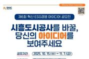 [ 중앙뉴스미디어 ] 시흥도시공사는 10월 15일부터 11월 7일까지 ‘제6회 시흥도시공사 혁신·ESG경영 아이디어 공모전’을 개최한다. 이번 공모전은 공사의 주요 사업과 연계된 ‘디지털 기반 경영 구현’ 및 ‘지역상생‧협력’ 2개 분야로 진행되며, 공사에 관심 있는 시민 누구나 참여할 수 있다. 공모전 참가를 위해서는 공사 누리집 내 ‘혁신 아이디어 공모전’ 게시판에서 신청서를 내려받아 작성한 후 게시판 등록 또는 담당자 이메일로 제출하면 된다. 공사는 이번 공모전을 통해 시민의 시각에서 공사의 혁신 방향을 모색하고, 지역사회와의 상생을 강화하는 등 실질적 사업 발굴로 이어질 수 있도록 연계할 계획이다. 우수 아이디어로 선정된 제안은 최우수 1건(50만 원), 우수 1건(30만 원), 장려 2건(각 20만 원) 총 4건에 대해 온누리상품권이 수여되며, 선착순 참여자 5명과 일반 참여자에게도 추첨 이벤트를 통해 소정의 기프티콘을 제공할 예정이다. 자세한 사항은 공사 누리집을 통해 확인할 수 있다. 유병욱 사장은 “작은 아이디어 하나가 공사의 변화를 이끌 수 있다”며 “시민이 체감할 수 있는 다양한