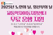 [ 중앙뉴스미디어 ] 파주도시관광공사 교통약자이동지원센터는 10월 2일 “노인의 날”과 10월 10일 “임산부의 날”을 맞이하여 특별교통수단 무료 운행 서비스를 진행한다고 밝혔다. “노인의 날”은 센터에 등록된 이용자 중 만 65세 이상을 대상으로 하며, “임산부의 날”은 센터에 등록된 임산부를 대상으로 무료 운행을 지원한다. 이용 방법은 기존 배차 접수 방식과 동일하며, 해당 기념일인 00:00~24:00에 콜센터에 접수된 배차건에 한하여 무료로 이용할 수 있다. 공사 조동칠 사장은 “교통약자이동지원 서비스는 단순한 교통수단 제공을 넘어 사회적 가치 실현에 기여하고 있다”며, “앞으로도 다양한 기념일을 연계한 사회공헌 활동을 추진해 교통약자의 권익 증진과 행복하고 안전한 이동 환경 조성에 힘쓸 계획이다.”라고 전했다.