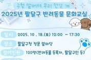[ 중앙뉴스미디어 ] 수원시 팔달구는 10월 18일 오후 12시부터 17시 30분까지 팔달구청 정문 앞마당에서 ‘2025년 팔달구 반려동물 문화교실’을 개최한다고 밝혔다. 반려동물 문화교실은 성숙한 반려문화 확산과 올바른 반려동물 관리, 양육 방법을 알리기 위해 마련됐으며 반려동물 등록자 및 팔달구민 120명을 대상으로 추진한다. 교육 프로그램은 △인식표 만들기 △산책 그룹 훈련 △반려견 셀프 미용으로 총 3개 프로그램을 추진한다. 12시부터 진행하는 ‘인식표 만들기’는 반려견 유실 방지를 위해 동물등록번호와 견주 연락처를 새긴 맞춤형 인식표를 직접 제작할 수 있고, 14시부터는 ‘산책 그룹 훈련’에서는 산책줄 핸들링과 돌발 상황 시 대처법 등 및 올바른 산책 방법에 대해 배워볼 수 있다. 15시 30분에는 초보자도 쉽게 실천할 수 있는 ‘반려견 셀프 미용 수업’이 준비되어 있다. 팔달구 관계자는 “2025년 반려동물 문화교실 개최를 통해 구민들이 반려동물을 책임감 있게 관리하고, 올바른 반려 문화가 조성되길 바란다“라고 말했다. 한편, 팔달구는 구 홈페이지, 안내문자 및 QR코드를 통