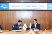 [ 중앙뉴스미디어 ] 화순군은 지난 10월 10일 경기도 용인특례시와 자매결연을 체결한 데 이어 10월 29일 대구광역시 중구와 상호 협력과 공동 발전을 위한 우호교류 협약식을 개최했다고 밝혔다. 이번 협약은 두 지역이 보유한 풍부한 인프라를 기반으로 활발한 교류를 추진해 생활 인구 확대와 지역경제 활성화, 지방 소멸 위기 공동 대응을 도모하기 위해 마련됐다. 이날 협약식에는 구복규 화순군수와 류규하 대구 중구청장, 오형열 화순군의회 의장, 김동현 대구중구의회 의장을 비롯한 주민자치회, 새마을회 대표 등 민관이 함께 참석하여 그 의미를 더했다. “함께 새롭게! 더 행복하게!”를 주제로 진행된 협약식에서 두 지자체는 문화·관광·체육·경제·교육·행정 등 다양한 분야에서 상호 교류와 협력을 추진하기로 했다. 특히 대표 축제 교차 홍보 및 상호 방문 등 실질적이고 지속 가능한 교류사업을 발굴해 나아갈 예정이다. 우호교류 협약을 기념해 화순군은 지역 대표 특산품인 샤인머스켓과 불미나리즙을, 대구 중구는 국가 무형유산인 단청장 보유자가 제작한 단청 공예품과 약령시에서 생산한 약령황제단을 선물했다.