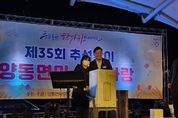 [ 중앙뉴스미디어 ] 양평군 양동면은 지난 6일, 쌍학교 야외무대에서 제35회 추석맞이 면민 노래자랑을 성황리에 개최했다고 밝혔다. 이번 행사는 비가 내리는 궂은 날씨에도 불구하고 면민들의 뜨거운 참여와 열정으로 추진됐으며, 고향을 찾은 귀성객과 주민들이 함께 어우러져 명절의 흥과 정을 나누는 화합의 장이 됐다. 특히 이날 행사에는 전진선 양평군수가 참석해 직접 인사말을 전하고 경품 추첨에도 참여하며, 주민들과 소통하는 시간을 가졌다. 전진선 양평군수는 “비 오는 날씨에도 함께해 주신 양동면 주민 여러분께 진심으로 감사드린다”며 “오늘처럼 한마음으로 웃고 즐기는 모습이 바로 행복한 양평의 힘”이라고 전했다. 노래자랑 본선에는 30명의 참가자가 무대에 올라 다양한 장르의 노래와 퍼포먼스를 선보이며 큰 호응을 얻었다. 초대가수 한가빈의 축하 무대와 각종 경품 추첨 이벤트도 더해져 현장은 열띤 분위기로 가득했다. 정창업 양동면장은 “이번 행사는 주민 한 분 한 분의 참여로 완성된 뜻깊은 자리였다”며 “앞으로도 지역의 정과 문화를 함께 나눌 수 있는 자리를 지속적으로 마련해, 모두가 즐겁고 활