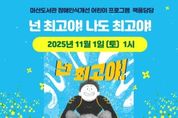 [ 중앙뉴스미디어 ] 김포시 마산도서관은 오는 11월 1일 오후 1시부터 3시까지, 장애인식개선 어린이 프로그램 책풍당당 '넌 최고야! 나도 최고야!'을 운영한다. 이번 프로그램은 제1회 한국그림책출판협회 그림책 부문 당선작인 현단 작가의 '넌 최고야!'를 활용해 어린이들이 장애를 바라보는 기존의 편견에서 벗어나 ‘장애’가 아닌 ‘사람’을 먼저 보는 시각을 기를 수 있도록 기획됐다. 현단 작가가 진행하는 이번 강의는 주인공 ‘라이언’을 통해 장애를 가진 사람도 우리 사회의 동등한 구성원임을 자연스럽게 전달한다. 또, 자신이 생각하는 ‘최고의 사람’ 모습을 직접 그려보는 독후활동을 통해 어린이들이 사람 중심의 관점을 갖고, 다양성을 존중하는 사고를 키울 수 있도록 한다. 참여 희망자는 10월 2일 오전 10시부터 마산도서관 홈페이지 또는 현장에서 신청할 수 있다. 모집 대상은 초등학생 1학년~4학년 20명이다.