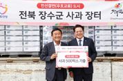 [ 중앙뉴스미디어 ] 안양시는 전북 장수군으로부터 지역 특산물인 사과 500박스(1,500만원 상당)를 기부받아 관내 사회복지시설에 전달했다고 24일 밝혔다. 이번 기부는 양 도시의 친선 결연 29주년을 기념해 청정 자연 속에서 재배한 우수 농산물을 널리 알리고, 도농 교류 협력을 강화하기 위해 마련됐다. 23일 오후 1시40분 안양시청 본관 앞에서 열린 전달식에는 최대호 안양시장과 최연수 장수사과원예농협협동조합장, 조합 이사 및 관계 공무원 등이 참석했다. 23~24일 안양시청 청사 내에서는 조합 주관으로 장수 사과 시식 및 홍보, 판매 행사가 열렸다. 시는 기부받은 사과를 사회복지시설 26곳에 전달해 추석을 맞아 어려운 이웃들과 풍성한 수확의 기쁨을 함께 나눴다. 시는 장수군과 친선 결연의 의미를 돈독히 하며 지역 농특산물 홍보에도 적극 협력할 계획이다. 최대호 안양시장은 “장수군의 따뜻한 마음과 정성이 담긴 기부에 깊이 감사드린다”면서 “앞으로도 도농 상생의 가치 실현을 위해 다양한 교류 협력을 이어 가겠다”고 말했다.