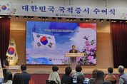 [ 중앙뉴스미디어 ] 법무부 양주출입국·외국인사무소는 2025. 9. 25. 관내‘경기섬유지원센터 컨벤션홀’에서 양주시 등 경기 북부지역에 거주하고 있는 귀화자 및 국적회복자 57명을 대상으로 국적증서 수여식을 개최했다. 2018. 12. 20. 국적법 개정에 따라 법무부장관 앞에서 하던 국민선서와 국적증서 수여는 귀화자 및 국적회복자 거주 지역별 출입국·외국인관서에서 시행하고 있다 이번 국적증서 수여식은 대한민국 국민이 되어 첫 번째로 맞이하게 될 ‘추석’ 민속명절의 의미를 되새기고, 한국 사회에서 소속감과 자긍심을 가지고 살아갈 수 있도록 격려하고 축하하는 뜻깊은 장이 됐다. 이날 행사는 △대통령 축하영상 시청, △귀화자 등 국민선서 및 국적증서 수여, △기관장 축사, △ 국적취득 대표자의 소감 발표 순으로 진행됐다 김용규 소장은 축사를 통해 쉽지 않은 과정을 거쳐 대한민국 국민으로서 사회 구성원이 된 국적 취득자에게 권리뿐만 아니라 책임과 의무의 막중함을 강조하면서 다양한 문화적 배경과 경험을 바탕으로 서로 간에 이해와 화합을 증진하는데 노력해 주기를 당부했다 또한, 국적증서 수여